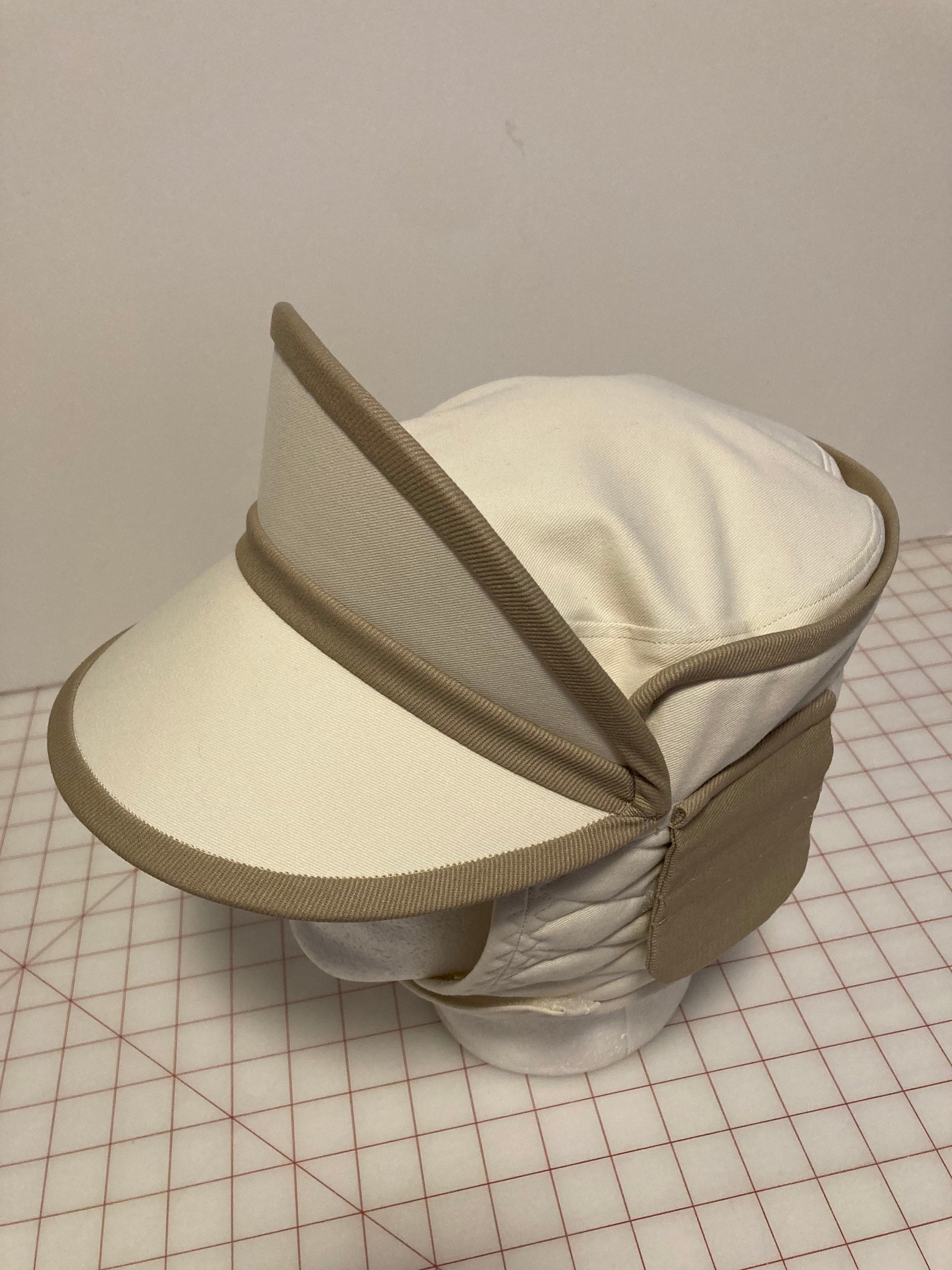 When you purchase the hat leave a message with the sale indicating your head size. I increase or decrease the hats size for optimal fit if your head is on the low or high end of the size adjustment. Especially those with heads that are on the small end of the size range. Also choose cotton twill white or cotton twill vanilla off white in the fabric variation options. Thank you.